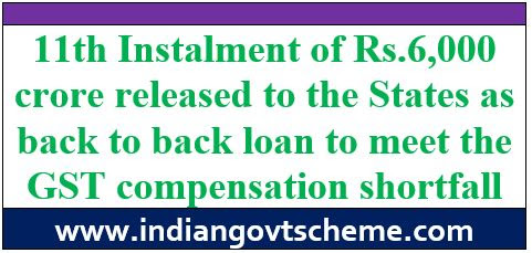 11th Instalment of Rs.6,000 crore released to the States as back to back loan to meet the GST compensation shortfall