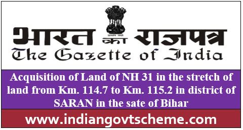 Brief Description of the land to be acquired with or without structures falling NH31 in the stretch of land from Km. 114.7 to Km. 115.2 (District Land Acquisition Office, Collectorate Campus, Saran, Chapra) in the district of SARAN in the state of BIHAR………………….. Click here to read more.