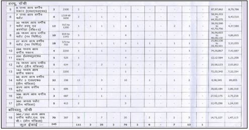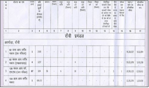 सूचित किया जाता है कि “जैसा है जहाँ है” (As is Where is) के आधार राँची (हरमू /अरगोड़ा / बरियातु), जमशेदपुर (कुलुपटंगा, आदित्यपुर) एवं धनबाद में नव निर्मित एवं शेष बचे फ्लैट /मकान फ्लैट आवंटन हेतु उपलब्ध हैं, जिनका लौटरी के माध्यम से भाड़ा-सह-कय के आधार पर 90 वर्षों के पटटे पर आवंटन किया जाना है। फ्लैटों का विवरण निम्नवत् है :-
