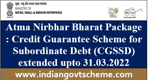 Atma Nirbhar Bharat Package : Credit Guarantee Scheme for Subordinate Debt (CGSSD) extended upto 31.03.2022