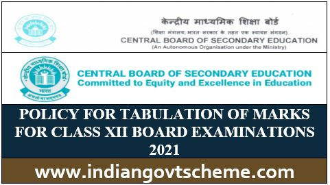 CBSE : POLICY FOR TABULATION OF MARKS FOR CLASS XII BOARD EXAMINATIONS 2021
