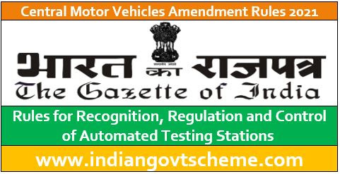 Central Motor Vehicles Amendment Rules 2021 : Rules for Recognition, Regulation and Control of Automated Testing Stations
