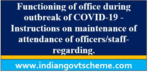 Subject: Functioning of office during outbreak of COVID-19 – Instructions on maintenance of attendance of officers/staff- regarding.
