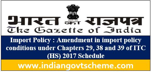 Import Policy : Amendment in import policy conditions under Chapters 29, 38 and 39 of ITC (HS) 2017 Schedule