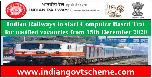 Indian Railways is going to start computer based tests for notified vacancies from 15th December 2020.