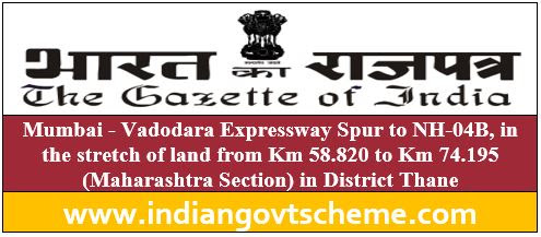 Mumbai – Vadodara Expressway Spur to NH-04B, in the stretch of land from Km 58.820 to Km 74.195 (Maharashtra Section) in District Thane