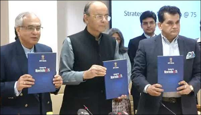 The ‘Strategy for New India @75’was released today at a press conference by the Union Finance Minister Shri Arun Jaitley, in the presence of NITI Aayog Vice-Chairman Dr Rajiv Kumar, Members Dr Ramesh Chand and Dr VK Saraswat and CEO Shri Amitabh Kant.