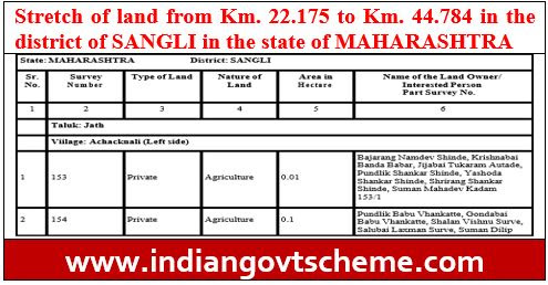 Stretch of land from Km. 22.175 to Km. 44.784 in the district of SANGLI in the state of Maharashtra