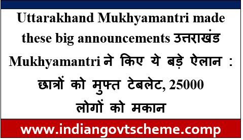 Uttarakhand Mukhyamantri made these big announcements उत्तराखंड Mukhyamantri ने किए ये बड़े ऐलान : छात्रों को मुफ्त टेबलेट, 25000 लोगों को मकान